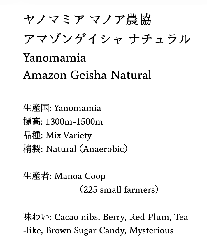 [大容量] アマゾンゲイシャ ナチュラル ヤノマミア マノア農協
